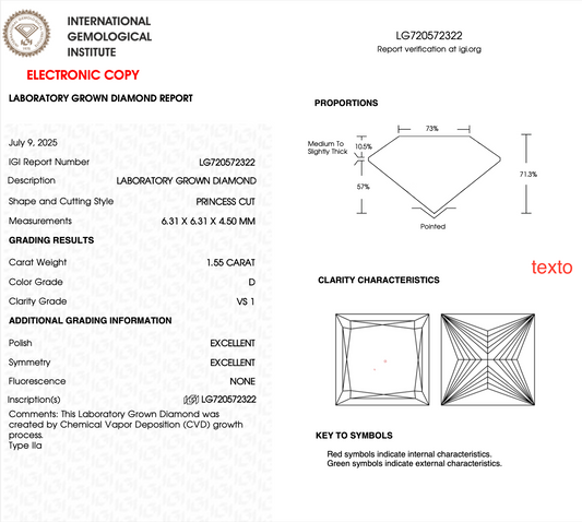 DIAMANTE DE LABORATORIO IGI CORTE PRINCESS 1.50 CT D / VS1